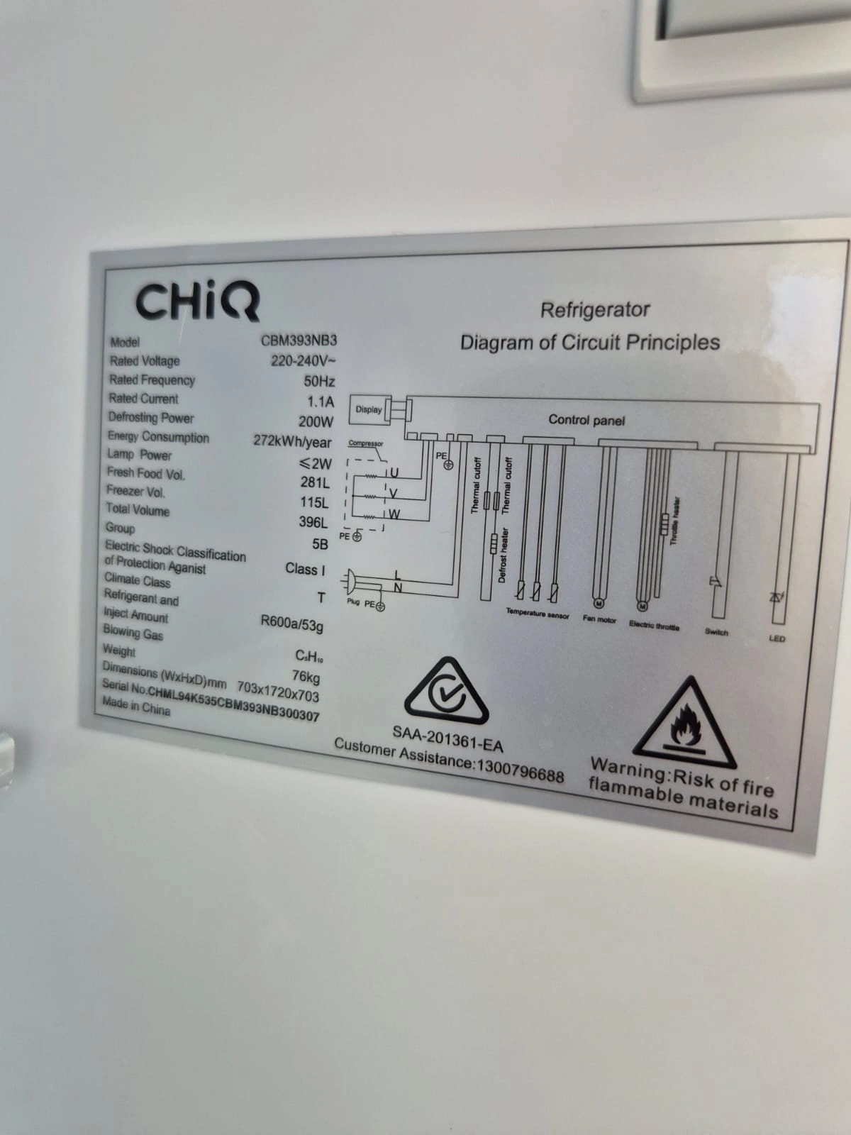 - 396L Capacity – Practical size for everyday use
