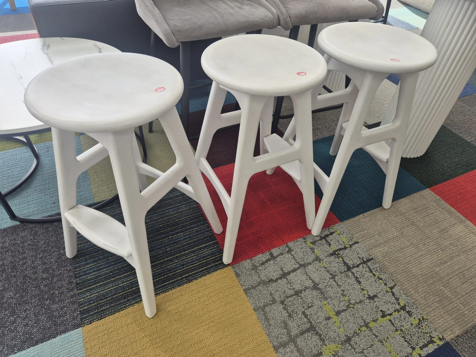 Upgrade your kitchen or bar area with this set of 3 bar stools, available in excellent, like-new condition. Gently used and well maintained, these stools offer comfortable seating and a modern look that suits any home décor. Perfect for kitchen islands, breakfast counters, or entertainment spaces, they feature sturdy construction and a practical design for everyday use. Clean, stable, and ready for immediate use.