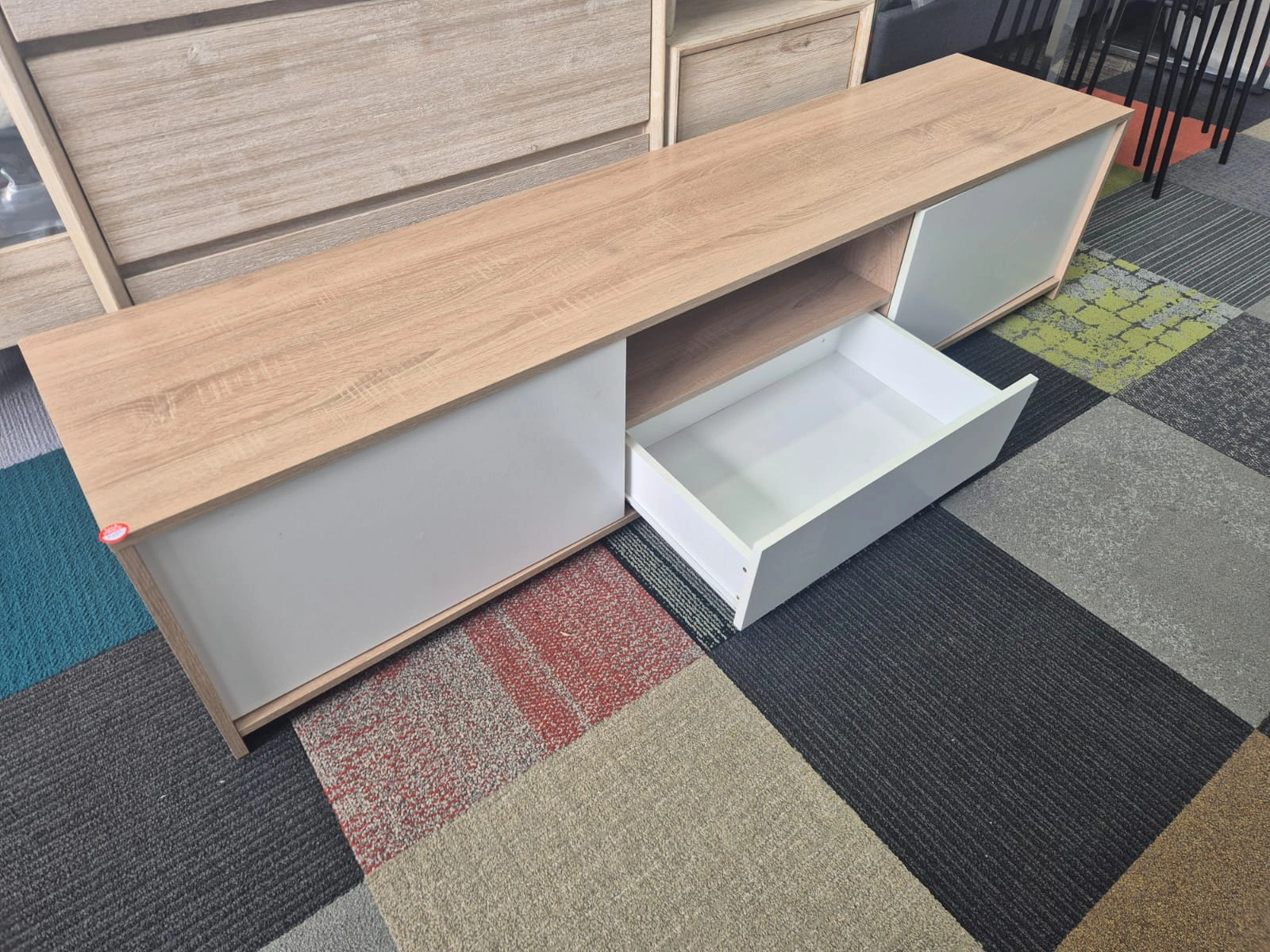 Enhance your living space with this wooden TV unit, kept in used like new condition. Crafted from solid wood with a stylish finish, it offers both durability and elegance. Perfect for holding your TV, media devices, and décor items, this unit adds a touch of warmth and sophistication to any living room. Its sturdy design, ample storage space, and timeless look make it a smart choice for anyone wanting quality furniture at an affordable price.